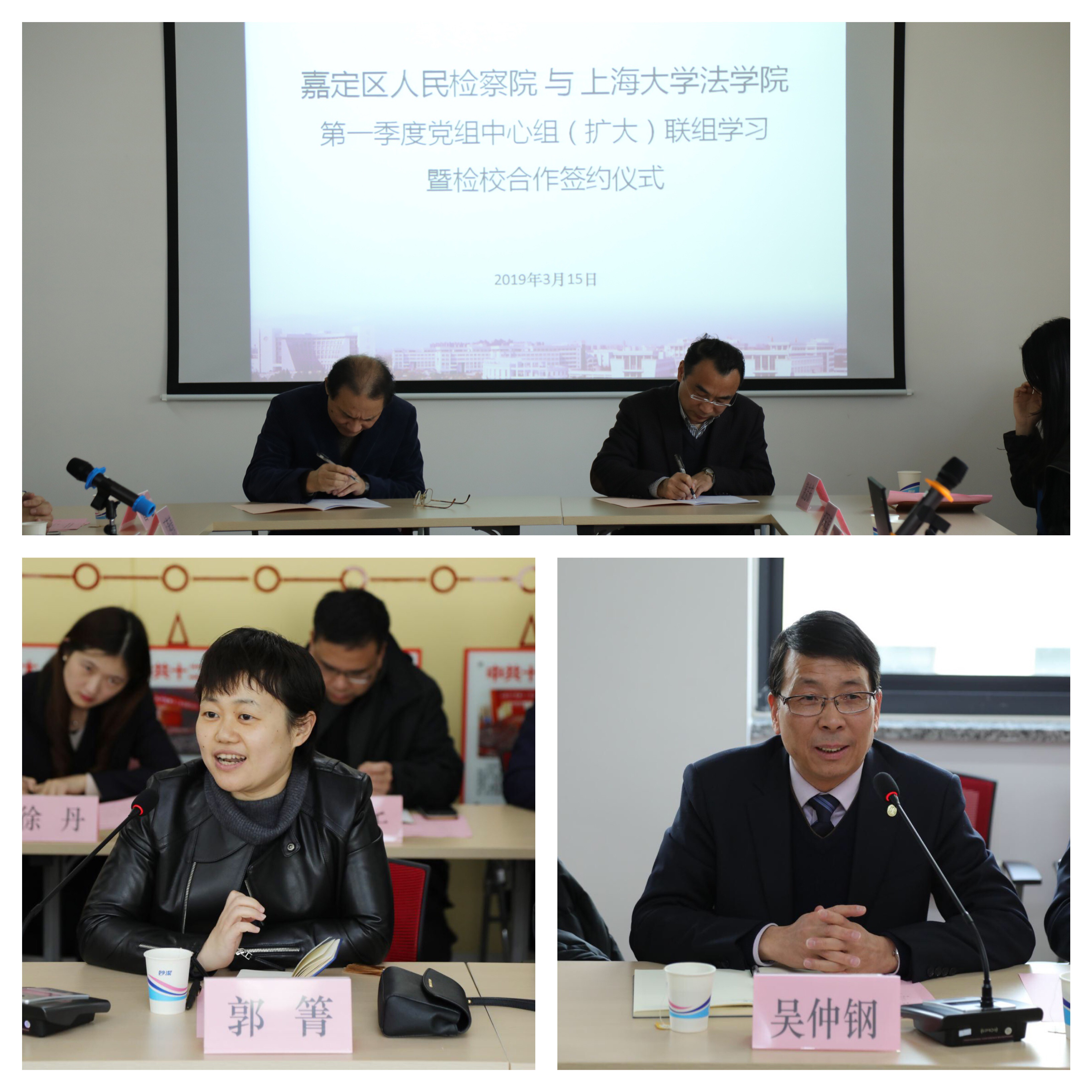 3月15日,嘉定区人民检察院党组书记、检察长高振国,党组成员、副检察长郭箐、孔杰、肖友广等一行30人到访77779193永利官网,在77779193永利官网504会议室举办党组中心组(扩大)联组学习暨检校合作签约仪式,77779193永利官网院长文学国,党委书记吴仲钢,副院长李凤章,党委副书记王国正,刑事诉讼法教授兰跃军及77779193永利官网中心组成员共13位领导老师出席了本次活动。双方紧密围绕习近平新时代中国特色社会主义思想,以全面加强依法治国,深入推进检校合作为主题,进行了交流与探讨。