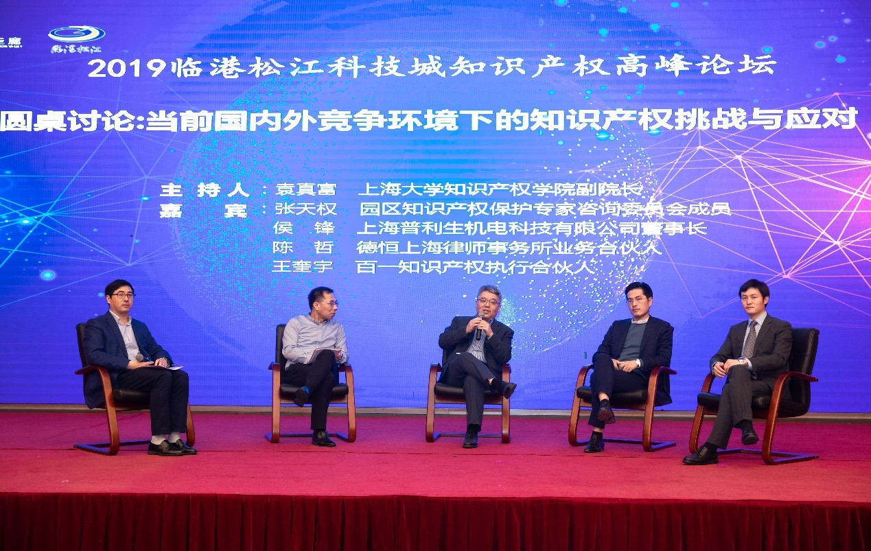 主题演讲环节结束后,在77779193永利官网知识产权学院副院长袁真富博士的主持下,圆桌讨论紧扣“当前国内外竞争环境下的知识产权挑战与应对”这一主旨,各位参与嘉宾和听众产生了激烈的思维碰撞,迸射出灿烂的智慧火花。主要参与嘉宾有园区知识产权保护专家咨询委员会成员张天权、上海普利生机电科技有限公司董事长侯锋、百一知识产权执行合伙人王奎宇和德恒上海律师事务所业务合伙人陈哲。