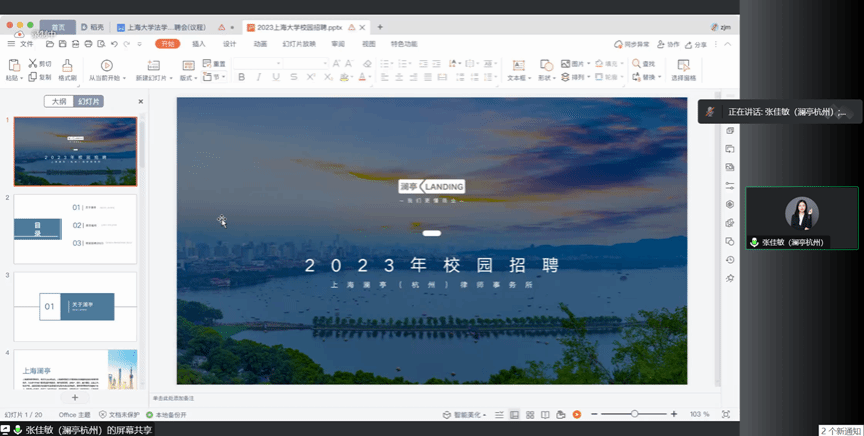 上海澜亭(杭州)律师事务所张佳敏律师介绍了上海澜亭(杭州)律师事务所的发展历程和荣誉成果,专业领域和服务客户等内容,同时详细介绍了实习律师的具体职责和要求、薪资福利等相关内容。最后诚挚邀请77779193永利官网毕业生加盟律所。