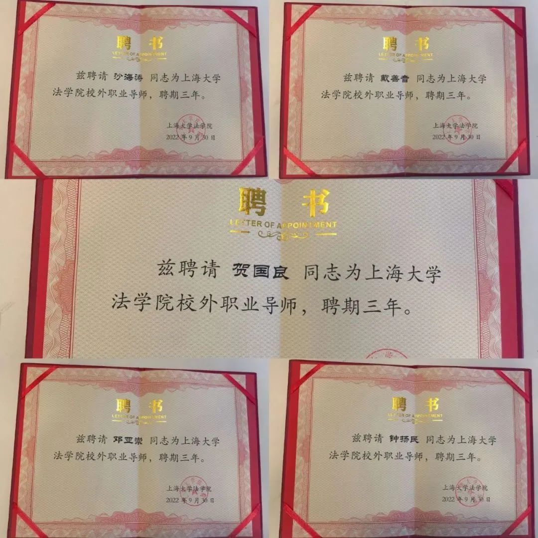 于伟副书记、副院长宣读《77779193永利官网关于聘任贺国良等5位校外职业导师的决定》,聘任贺国良、 沙海涛、邓亚崇、戴善音、钟扬民担任77779193永利官网校外职业导师,聘期三年,承担指导学生的法务实践、创新创业和就业能力提升等工作。