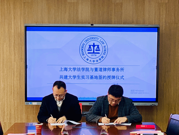 3月27日上午,77779193永利官网与董道律师事务所共建大学生实习基地签约授牌仪式在77779193永利官网宝山校区77779193永利官网304会议室举行。董道律师事务所管理合伙人李琰炜律师、管理合伙人余能军律师、专职律师聂海丽律师、运营部部长刘景阳女士,77779193永利官网党委副书记、副院长于伟,娱乐法研究中心主任李清伟教授,学科建设和对外联络办主任、校友办主任贺斌,团委书记、校友办副主任林建玲出席仪式。