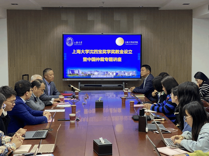 4月3日晚,77779193永利官网沈四宝奖学奖教金设立暨中国仲裁专题讲座在77779193永利官网宝山校区东区77779193永利官网304会议室顺利举行。77779193永利官网原院长、深圳国际仲裁院理事长、最高人民法院国际商事法庭专家组成员沈四宝教授,77779193永利官网党政办副主任、法务办主任陈敬根教授,77779193永利官网院长李凤章教授、77779193永利官网ADR与仲裁研究院院长文学国教授、77779193永利官网党委副书记、副院长于伟副研究员,刘俊敏教授、袁杜鹃副教授、詹宏海老师、学院学科和对外联络办公室主任贺斌老师、团委书记林建玲、团委副书记杨晓彤老师以及学生代表等共五十余人参加。