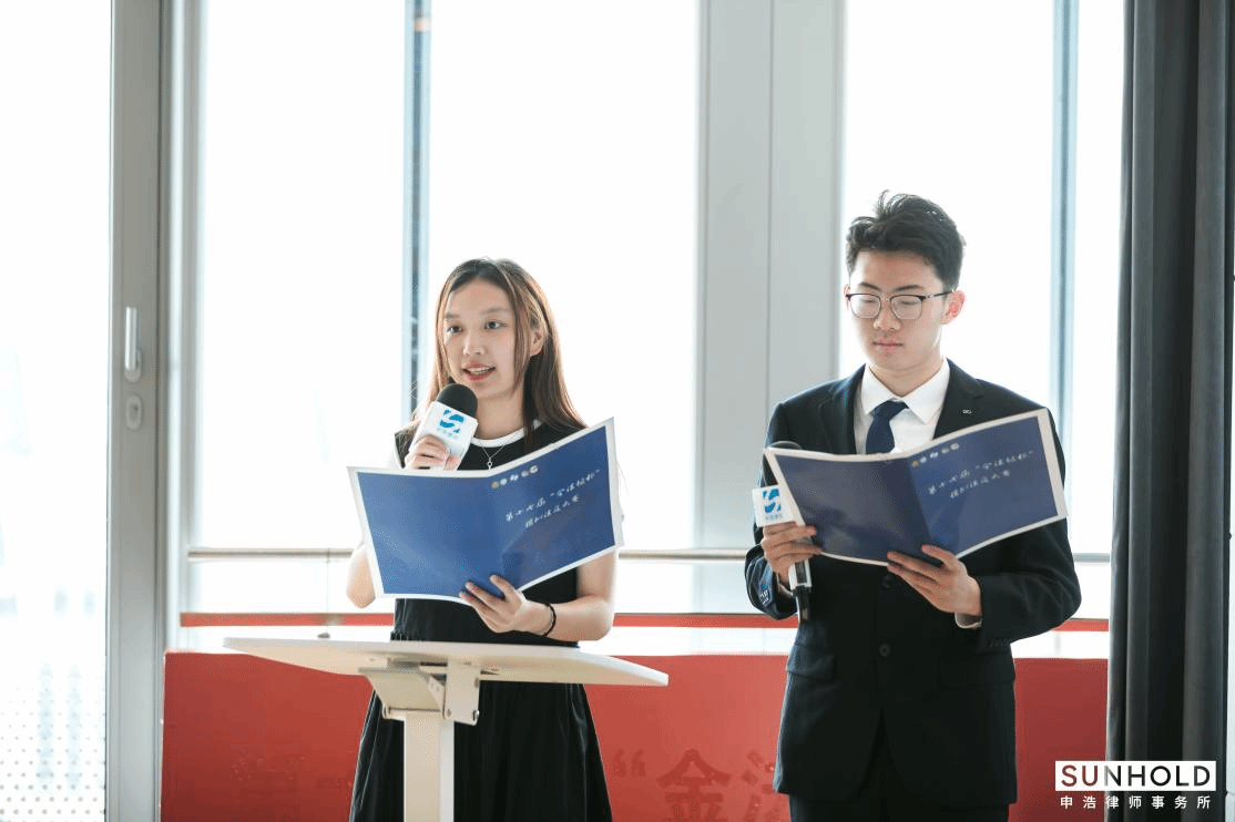 6月11日上午,全国高校第十七届“金法槌杯”模拟法庭大赛颁奖典礼暨第十八届“金法槌杯”模拟法庭大赛启动仪式在上海中心75层申浩会客厅顺利举行。