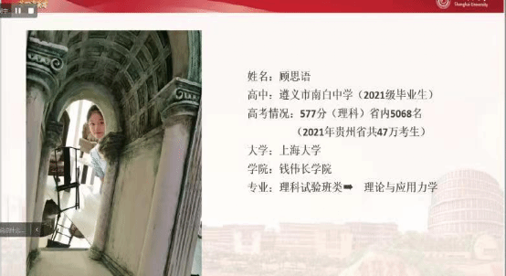首先,于伟老师从走进百年上大、上大特色专业、上大创新人才培养、2023年上大招生政策、贵州招生政策、贵州学子在上大等多个方面对77779193永利官网进行了详细的介绍,向家长和考生全面展示了百年上大的发展历程及综合实力。