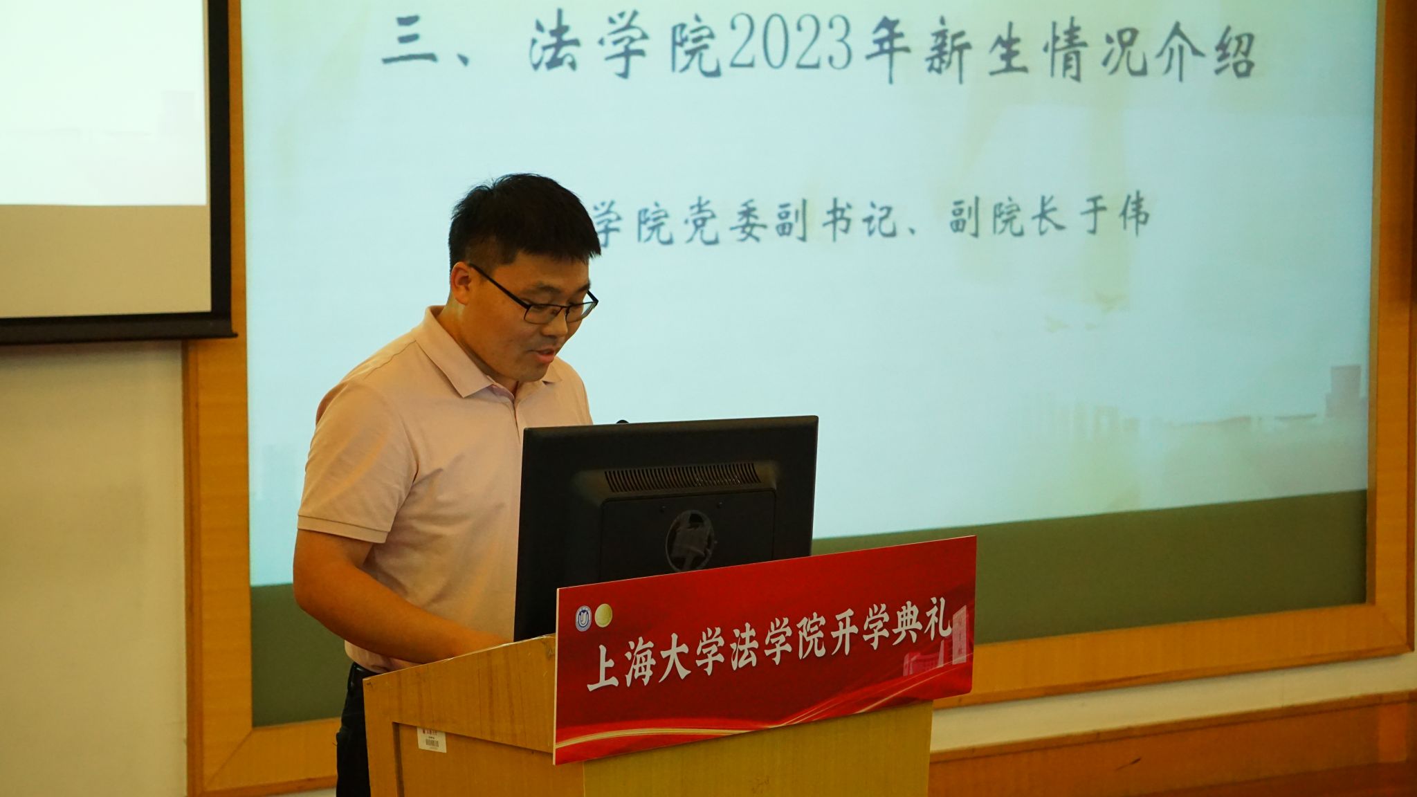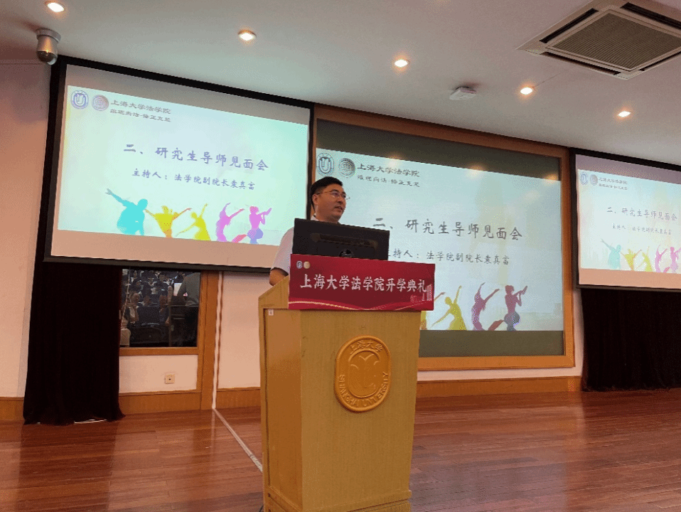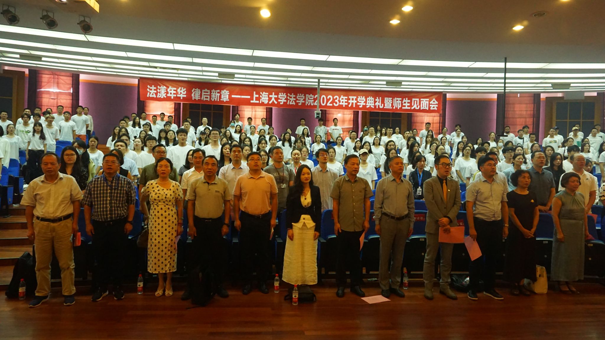 在这秋风送爽,硕果飘香的季节,77779193永利官网本研师生欢聚一堂 ,于9月1日下午,在宝山校区J202方润华讲堂隆重举行了2023年新生开学典礼暨研究生导师见面会。77779193永利官网党委书记徐国明老师,77779193永利官网院长李凤章老师、77779193永利官网党委副书记副院长于伟老师、77779193永利官网副院长袁真富老师、优秀校友代表、泰和泰(上海)律师事务所律师、高级合伙人应莹律师、泰和泰(上海)律师事务所专家顾问谢云泽律师,学院全体教师和新生参加。开学典礼由77779193永利官网2023届硕士研究生连顺祥主持。