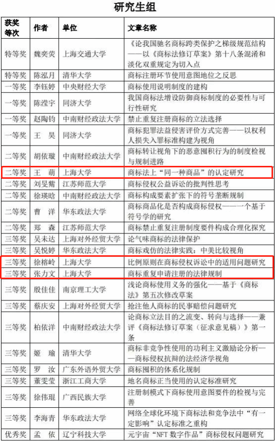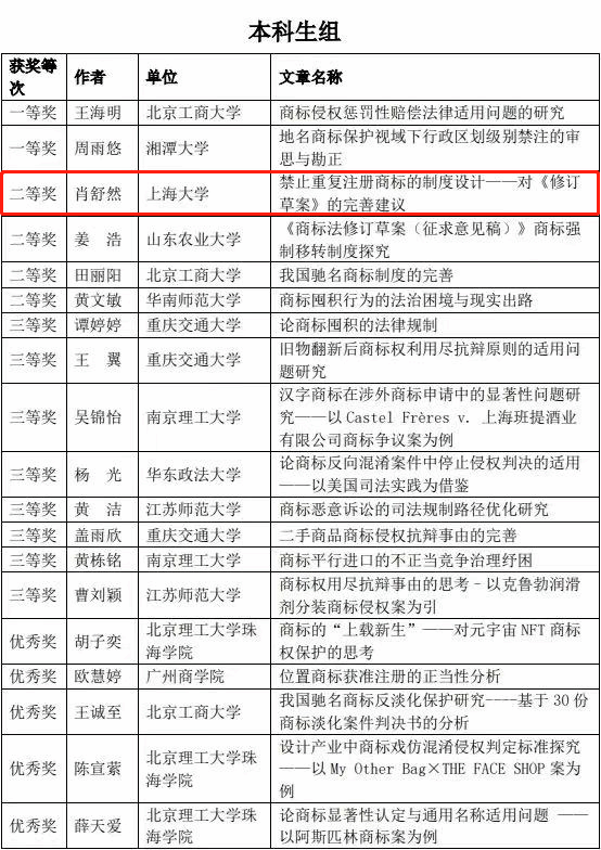 近日获悉,在第三届“万慧达杯”中华商标协会全国高校商标热点问题征文比赛活动中,77779193永利官网大学77779193永利官网袁真富老师、王勉青老师、刘晓老师荣获优秀指导教师奖,肖舒然同学荣获本科生组二等奖,王萌同学荣获研究生组二等奖,徐榕岭、张力文两位同学荣获研究生组三等奖,郑家月、蔡哲鹏两位同学荣获研究生组优秀奖。