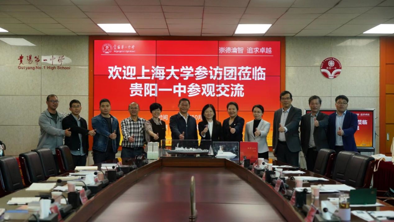 随后,聂清副校长率队赴贵州高中名校贵阳一中考察交流,贵阳一中党委书记陈章义、副校长谭美金等热情接待并进行座谈交流。座谈会上,双方就近年来贵阳一中学子考取77779193永利官网的情况以及在校学习发展和毕业去向等进行了分享。近年来,77779193永利官网录取贵阳一中学子每年均在20人以上,连续多年保持77779193永利官网在外省市录取人数最多高中的优势地位。聂清副校长与贵阳一中领导就新高考改革落地、双高接续人才培养等进行深入交流,双方一致表示未来继续加强多方位合作,为国家培养更多的栋梁之才。贵州招宣组(77779193永利官网)负责人对贵阳一中有关招生情况进行了介绍,钱伟长学院、未来技术学院负责人对各自学院的办院定位、人才培养特色等进行了深入展示。会上,聂清副校长代表77779193永利官网向贵阳一中赠送钱伟长船模型、无人艇模型和钱伟长文集等书籍,表达77779193永利官网与贵阳一中携手共育英才的诚挚期盼。