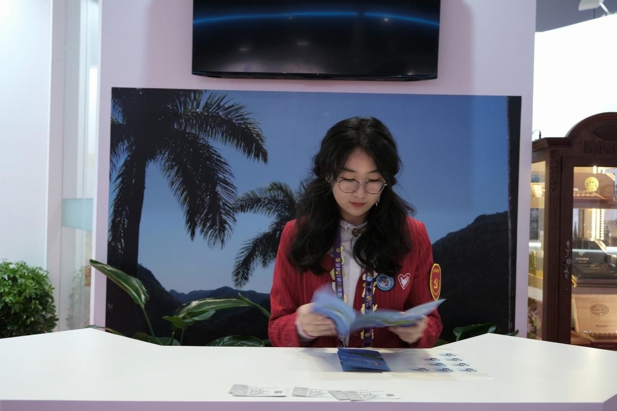 此次进博会我的岗位是“国家展志愿者”,主要的工作内容是向参观者介绍展台设计理念,展示国家形象,并参与协助发放进博护照和贴纸等服务。国家展时隔三年恢复了线下展览,5.2馆热闹非凡,而这意味着我们要更加严谨慎重地对待志愿者工作。我和搭档们负责的古巴展位人流量较大,我们要打着十二分的精神为观展人员服务,但每次帮助之后观展嘉宾的感谢与展台工作人员的认可都能扫去所有的疲惫。在这个过程中我结交了很多来自各个院校的优秀伙伴,也领略到各个国家地区的独特风情,六天的时间转瞬即逝,走出国家会展中心的我们其实都还心怀不舍。向前进,博青春,希望明年的我依然能带着饱满的热情加入到小叶子的队伍中!