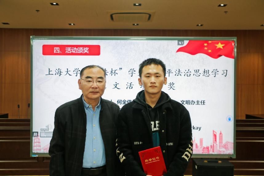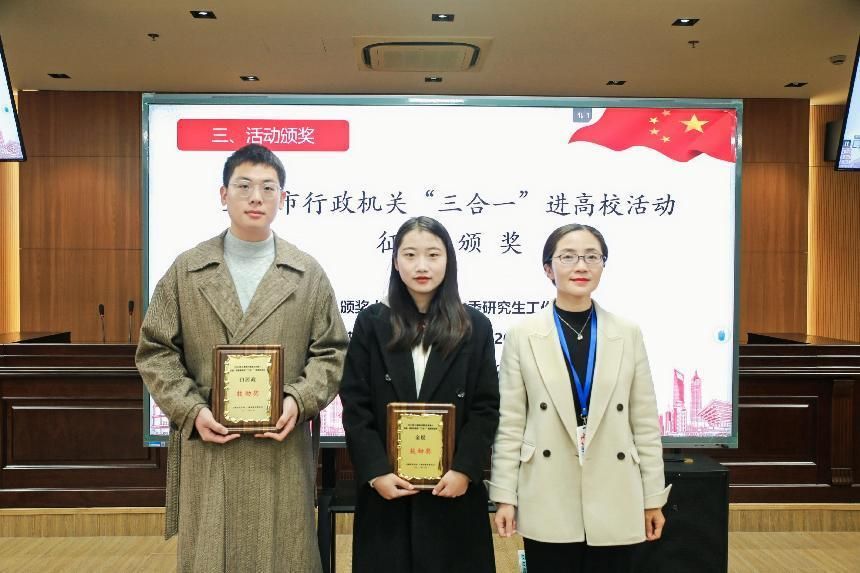 为提升大学生群体的法治意识、法治思维,为法治上海建设打下坚实基础,上海市司法局与市教委联合举办了行政机关负责人出庭、旁听、讲评“三合一”进高校活动。77779193永利官网荣获由市司法局、市教委颁发的“三合一”进高校优秀组织奖,2名同学在征文活动中获奖。党委研究生工作部部长魏宏为77779193永利官网白居政、金娱同学颁发“三合一”进高校征文活动奖牌。