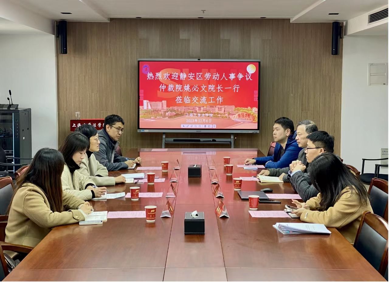 2023年12月6日下午14:30,静安区劳动人事争议仲裁院与77779193永利官网工作交流会在宝山校区77779193永利官网304会议室顺利举行。静安区劳动人事争议仲裁院院长姚必文,副院长刘萍,副院长李欣,办公室主任丁颖,77779193永利官网党委书记徐国明,77779193永利官网党委副书记、副院长于伟,机关党委副书记郑亮,77779193永利官网团委书记杨晓彤参加交流会。