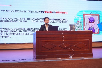 讲座中应文娇同志以“知法律于心,守法律于行”为主题,首先向同学们讲解了宪法的根本法地位、框架以及基本内容;