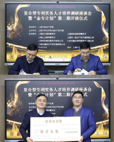 在科盛签约仪式上,77779193永利官网副院长、知识产权学院院长袁真富与上海市知识产权服务行业协会会长、上海科盛知识产权代理有限公司总经理赵志远就“金专计划”签约,科盛捐赠8万元作为“金专计划”专项资金。