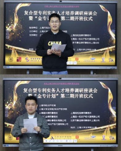 上海市知识产权服务行业协会会长、上海科盛知识产权代理有限公司总经理赵志远,上海弼兴律师事务所创始合伙人、主任薛琦,上海段和段律师事务所全球及中国董事局董事、知识产权中心主任郭国中,上海专利商标事务所有限公司合伙人、电学物理事业部总经理张鑫,上海汇业律师事务所高级合伙人王函,上海百一知识产权代理有限公司创始合伙人王奎宇,北京市集佳律师事务所上海分所合伙人李文红,作为本次“金专计划”的支持单位代表,依次向大家分享了自己对于“金专计划”的理解,阐述了专利实务人才的培养重点、培养要求和培养目标,肯定了专利实务人才的行业憧憬与就业前景。
