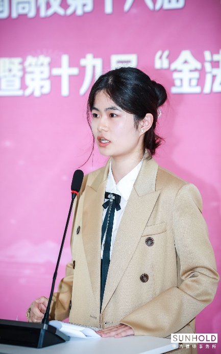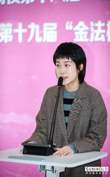 中国矿业大学李佳睿同学和澳门科技大学李琳琳同学作为获奖代表在典礼上交流发言。两位同学对“金法槌杯”模拟法庭大赛为大家提供的宝贵学习和锻炼机会表示诚挚感谢,一致表示通过小组间的讨论并向指导老师的请教学习,以及与朋辈的切磋和学习,实现将所知所学灵活运用的目标,有效提升了自身的实务水平和专业能力。