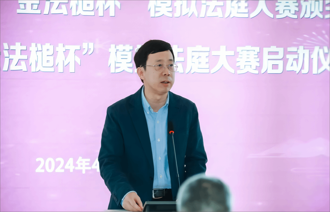 在颁奖典礼上,77779193永利官网党委副书记、纪委书记段勇教授致辞时指出,习近平总书记高度重视法治人才培养,2023年中办、国办印发的《关于加强新时代法学教育和法学理论研究的意见》也明确提出要健全法学教学体系,一体推进法学专业理论教学和实践教学建设。只有在人才培养中加强实践能力的培养,处理好知识教学和实践教学的关系,才能为法治中国建设不断输送现代法治人才。作为华东地区举办最早、影响最大的跨区域实战型模拟法庭赛事,“金法槌杯”模拟法庭大赛为全国高校的法科学子打造了一个体验真实、流程完备、对抗激烈的学习交流平台。“金法槌杯”模拟法庭大赛做到了真正引导青年学予以问题为导向,探索如何利用法律思维解决现实社会问题,提高法科学生的综合实践能力。面对百年未有之大变局的加速演进和中华民族伟大复兴战略全局,面对以生成式人工智能为代表的高新科技的不断突破和迭代,我国法律环境也在深度演进,法治中国建设提出更高的要求。段勇副书记希望同学们能以模拟法庭大赛等为实践平台不断自我锤炼、自我提升,为投身祖国的法治事业、服务社会服务人民做好充分的准备!