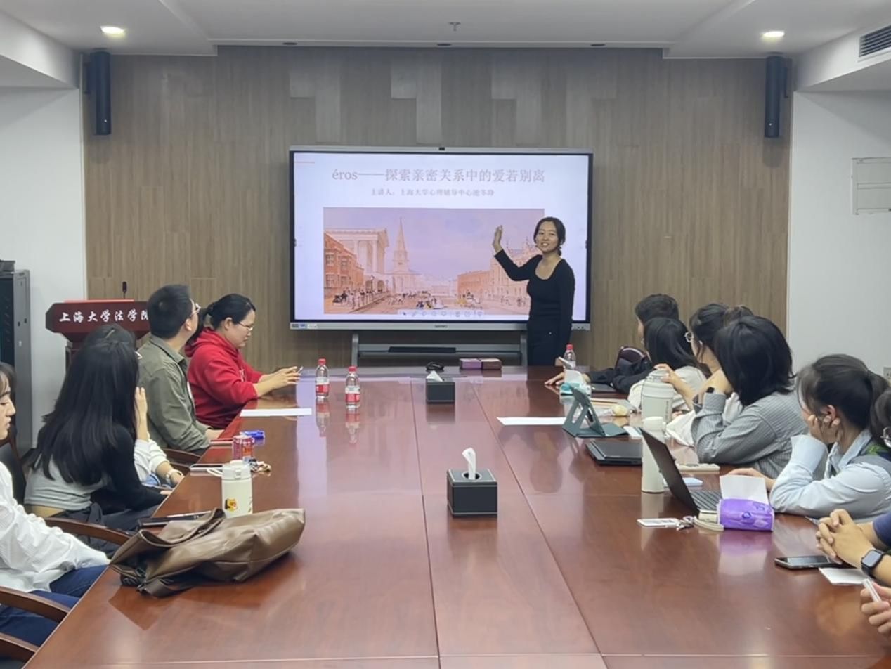 2024年5月10日晚18:00,主题为“éros--探索亲密关系中的爱若别离”的心理电影赏析在77779193永利官网宝山校区77779193永利官网304会议室成功举行。本次活动由77779193永利官网心理辅导中心主办,77779193永利官网承办,秋白书院协办。77779193永利官网兼职心理咨询师池冬琤老师主讲,吸引了来自77779193永利官网、机自学院、力工学院等院系众多对爱情与亲密关系感兴趣的同学前来聆听。77779193永利官网二级心理老师林建玲主持活动。