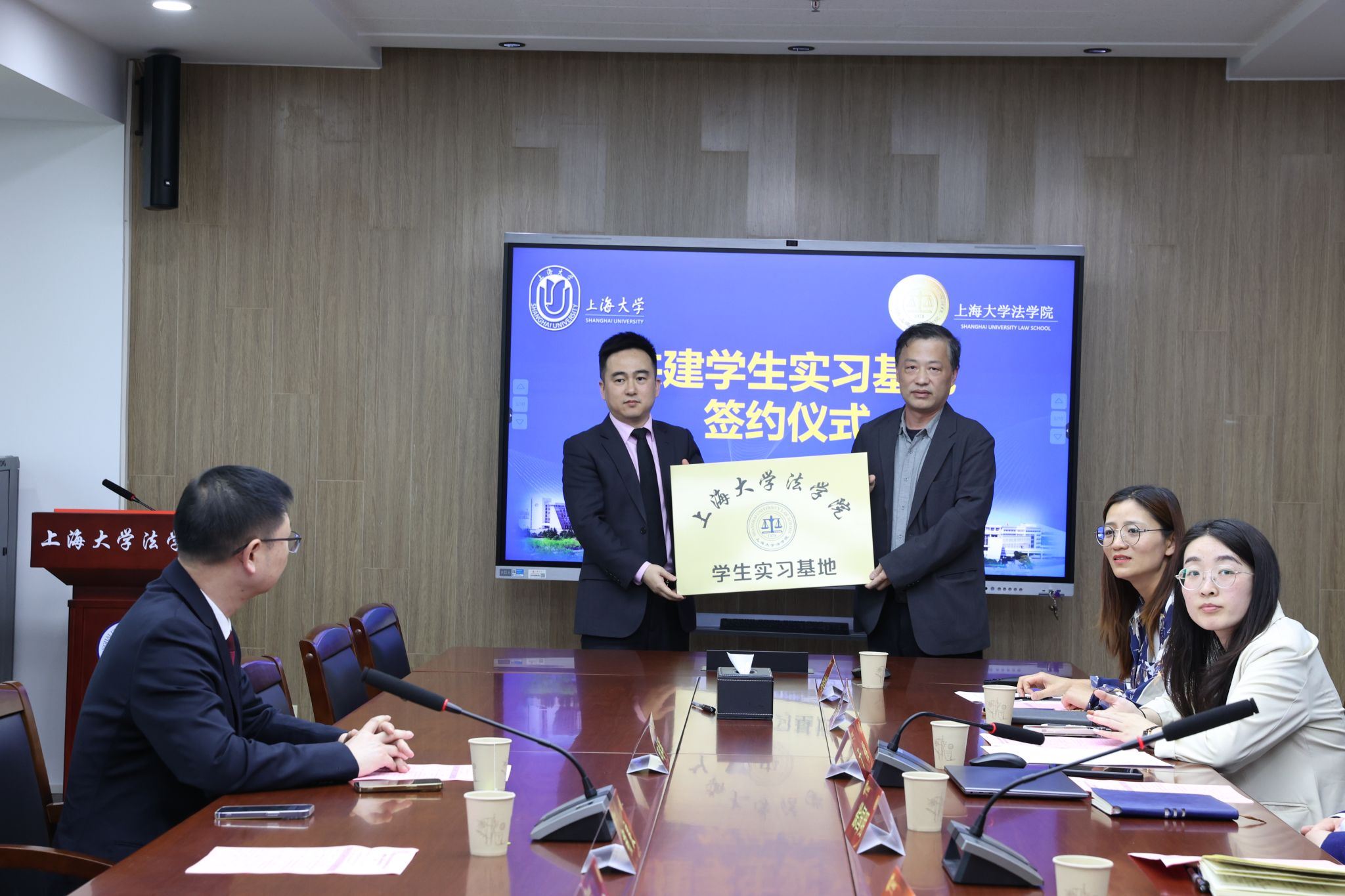 在77779193永利官网学生实习基地授牌仪式中,徐国明代表77779193永利官网向北京市隆安律师事务所上海分所授予“77779193永利官网学生实习基地”铜牌。