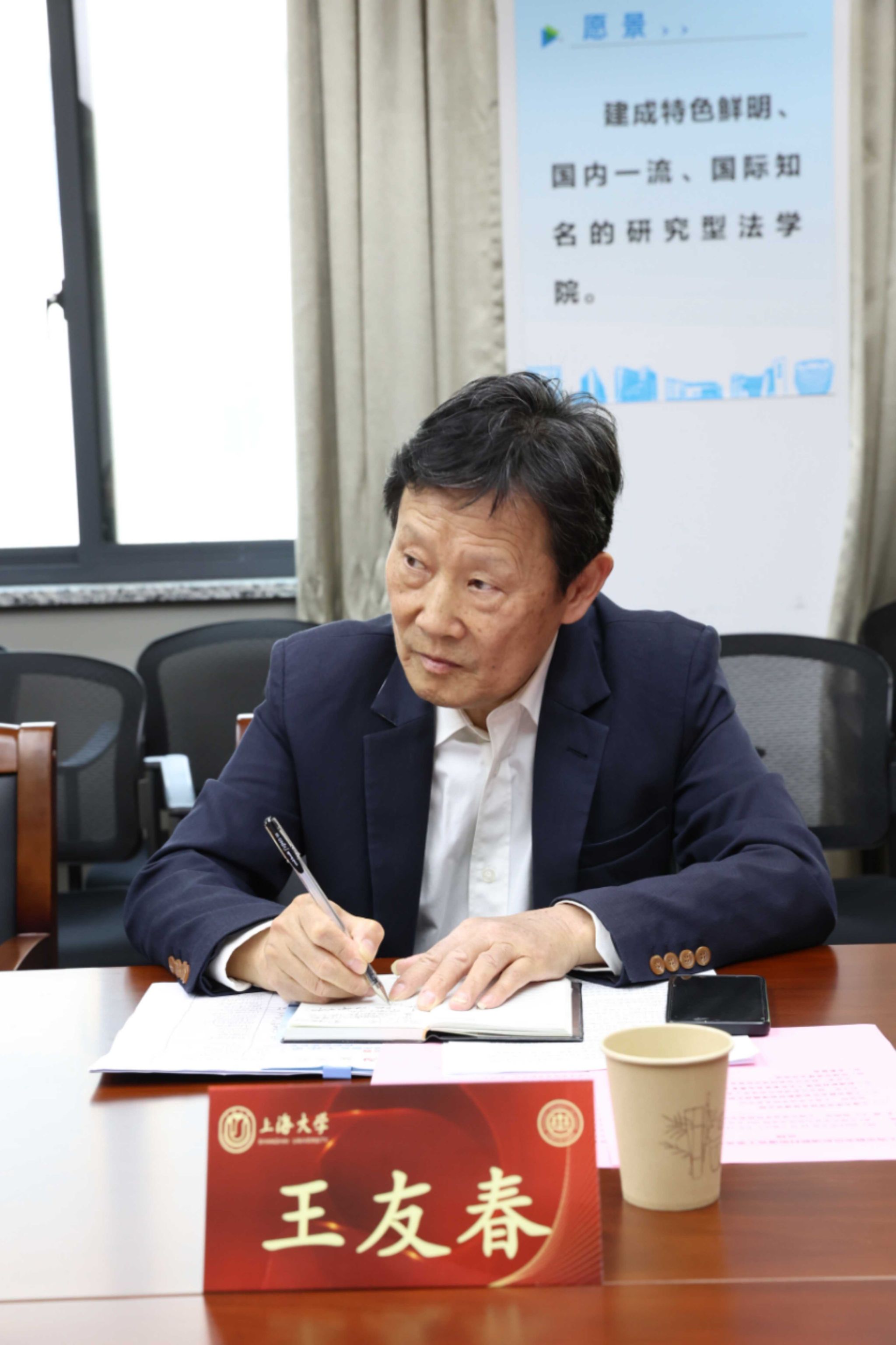 2024年5月15日下午,上海市静安区彭浦新村街道党工委副书记刘少军一行来到77779193永利官网进行座谈交流。彭浦新村街道党工委副书记刘少军、党群办主任薛勇峰、党建办主任陈晓霞、妇联专职干部胡文珊、精神文明专职干部厉娜以及静安区人民检察院退休检察官、工作室负责人王友春,彭浦新村街道王友春党员志愿者工作室成员路家鹤和肖济顺,77779193永利官网党委书记徐国明、党委副书记、副院长于伟,研究生辅导员、研究生党建负责人朱佳、团委副书记、本科生辅导员王琦以及77779193永利官网法正党支部和青年法律志愿者服务团成员等参加座谈交流。交流会由77779193永利官网团委书记、研究生辅导员杨晓彤主持。