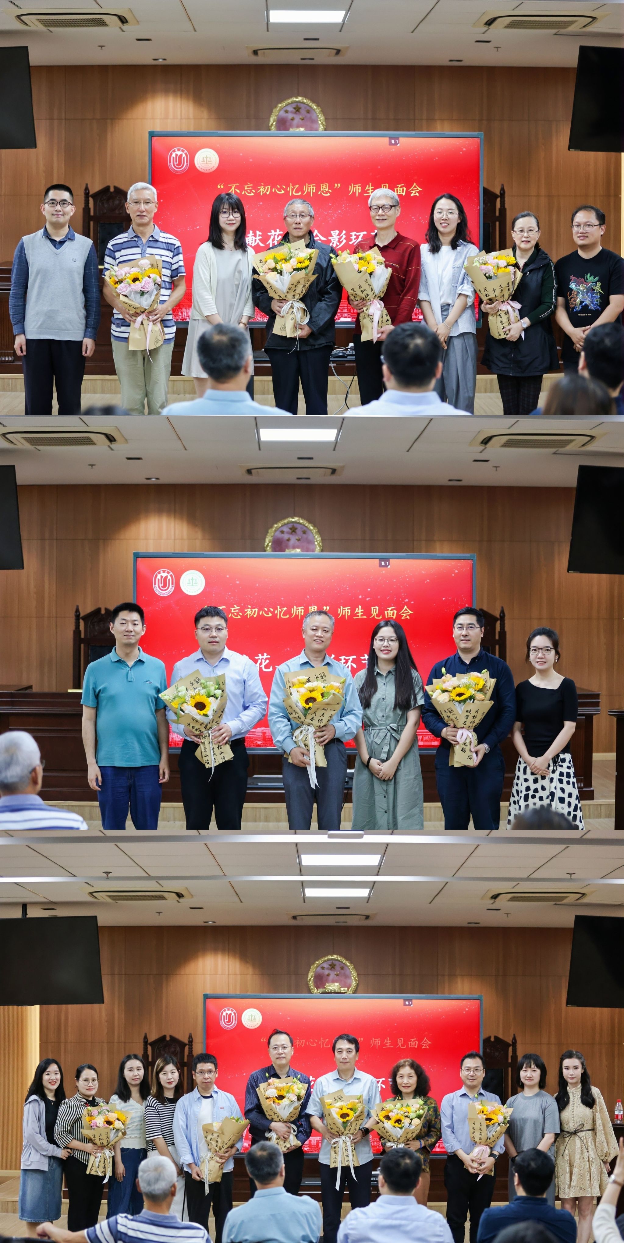校友们向辛勤耕耘的教师们献上鲜花,表达了对师恩的感激之情。这一束束鲜花,不仅代表着对老师们辛勤付出的敬意,也承载着校友们对那段求学岁月的怀念与感激。这一刻,师生之间深厚的情感得到了最真挚的表达。