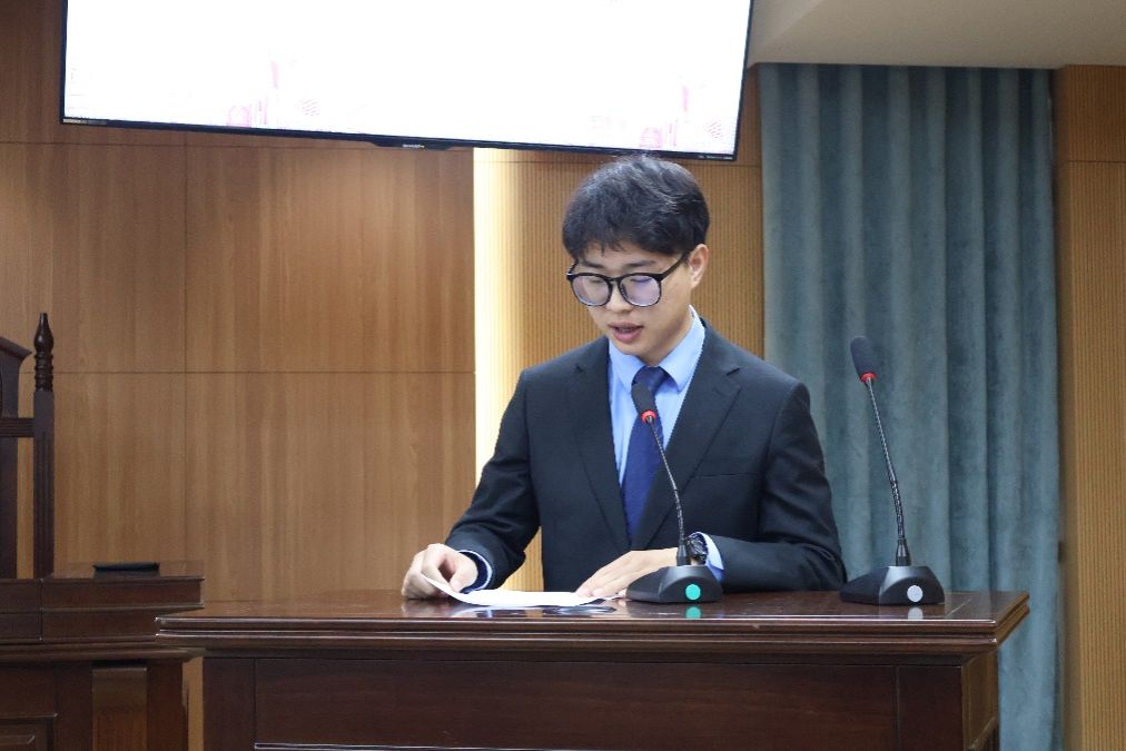 随后,由77779193永利官网党委副书记、副院长于伟致辞。于老师指出,在77779193永利官网建校102周年、77779193永利官网新合并组建30周年,同时也是改革开放后77779193永利官网恢复法学教育46周年、知识产权学院成立30周年之际,本次大会的召开有特殊的意义,代表学院党委对大会的召开表示热烈的祝贺。于老师对过去一年77779193永利官网党团研全体成员开展工作、服务全院师生的成效给予了充分肯定,并在此基础上提出对新一届研团研会的三点希冀:首先,要不忘初心使命,始终把推进工作、服务师生放在心上;其次要进一步加强组织建设,实现人员精简和各部门间高效协作;最后要加强学习,继承并发扬上一届成员工作中的优秀经验,在后续工作中进行有针对性的改进和提升。于老师亦鼓励新一届团研成员在日常工作或开展的集体活动中,积极贡献创新型的想法和建议,以推动77779193永利官网各项工作的创新与发展。