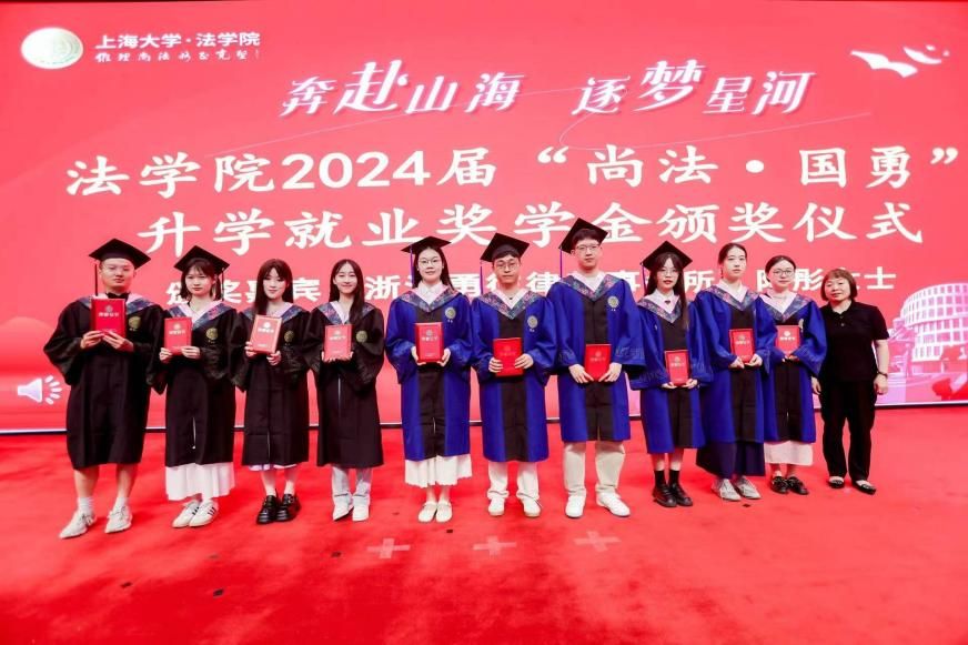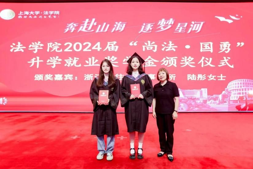 在2024年“尚法·国勇”奖学金颁奖仪式上,浙江勇往律师事务所陆彤女士为获得“尚法·国勇奖学金”的同学颁奖,预祝大家早日成为一名优秀的法律人。