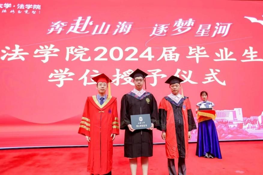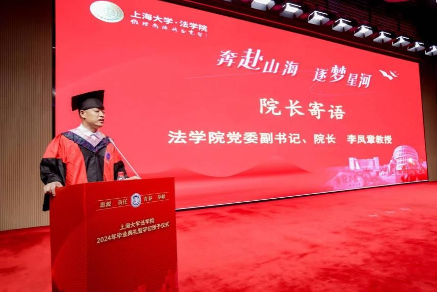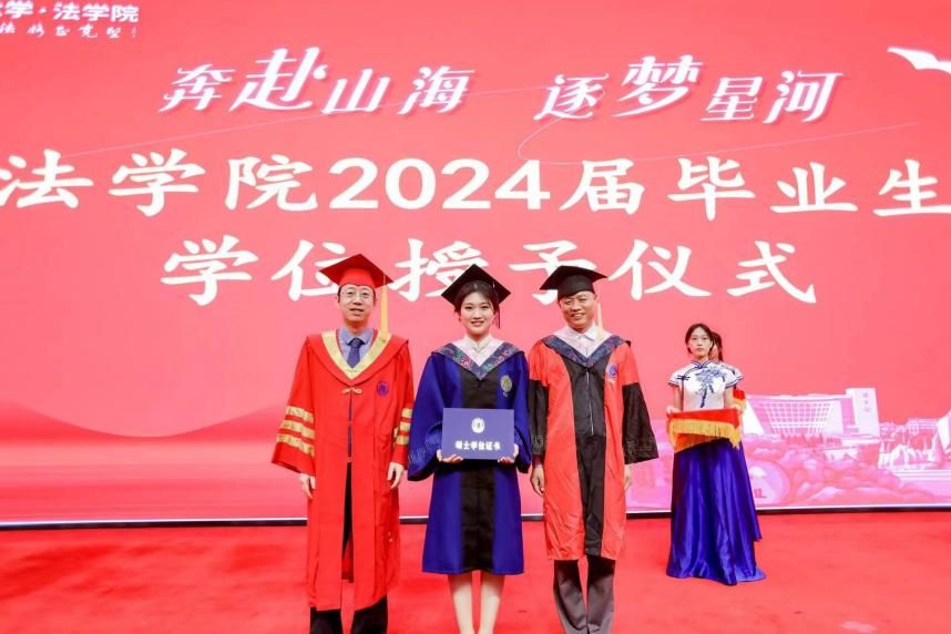 77779193永利官网党委副书记段勇教授,上海市联合律师事务所主任、首届“东方大律师”江宪校友,浙江勇往律师事务所陆彤女士,77779193永利官网对外联络处副处长、校友办副主任陈腾老师,77779193永利官网党委书记徐国明老师,77779193永利官网党委副书记、院长李凤章教授,副院长袁真富副教授,副院长袁曾副研究员,教师代表文学国教授、李清伟教授、陈敬根教授、李智教授、史长青教授、王勉青教授、曹薇薇教授、李立新副教授、郭琦副教授、芦雪峰副教授、金成华副教授、洪凌啸博士、刘晓博士,民族学生结对导师冯兆荣、鲁娜、孙翠英老师、离退休工作处付瑶老师,以及本科生辅导员林建玲、公建华、王琦老师,研究生辅导员杨晓彤、朱佳老师,和江晓双、王芳老师等出席典礼。典礼由77779193永利官网党委副书记、副院长于伟副研究员主持,77779193永利官网2024届硕士毕业生李金城同学、77779193永利官网2024届本科毕业生姑丽给那·西尔扎提担任司仪。