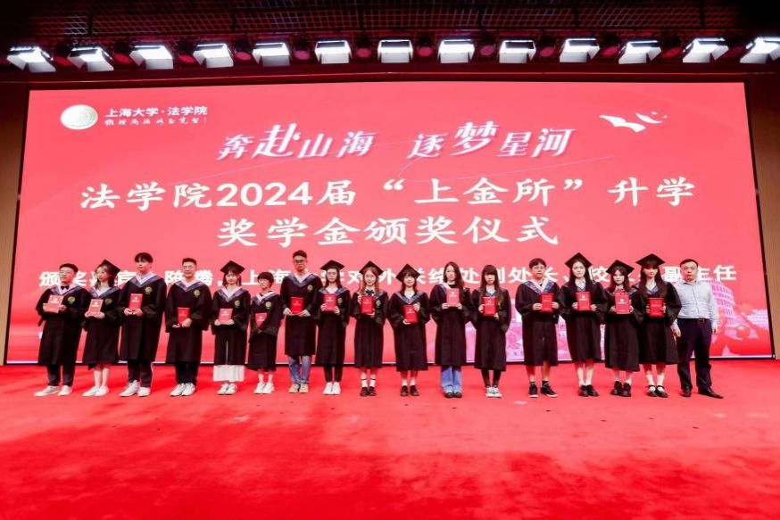 在2024 年“上金所”升学奖学金颁奖仪式上,77779193永利官网对外联络处副处长、校友办副主任陈腾,77779193永利官网文学国教授共同为获得“上金所升学奖学金”的同学颁奖,预祝大家继续攀登法学高峰。