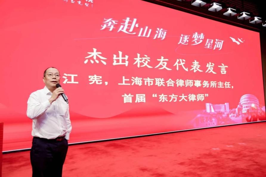 法脉相连,学长情深。首届“东方大律师”、上海市联合律师事务所主任江宪律师作为杰出校友代表发言。江宪校友表示,毕业生们即将奔赴山海,在77779193永利官网学习到的知识还不足够,仍应到实践中继续学习,去体悟世界的多元、多彩。江宪校友结合自己从事法律工作多年的感悟与经历,以自己曾经参与过的真实案件为例,告诉毕业生们司法实践并非总是非黑即白泾渭分明,从理论走向实务后,同学们会面临各种答案,要摒弃非黑即白的思路,秉持正义公平之心,寻找最好的答案。此外,学弟学妹们也要逐梦星河,追寻诗和远方,要提升格局,跳出法律看法律,成为一个真正眼光深邃、目光长远的杰出法律人。