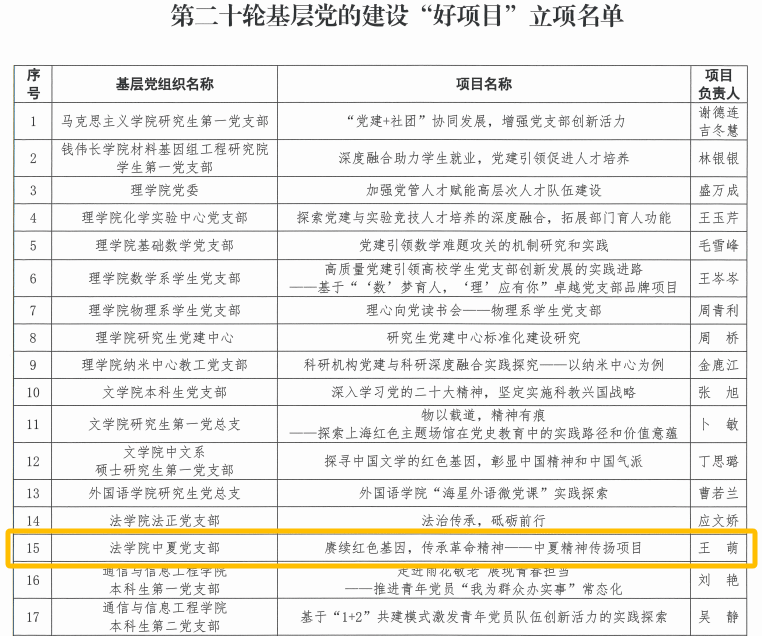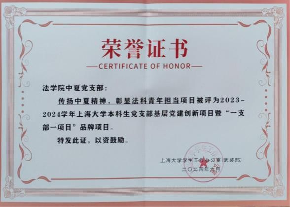 中夏党支部秉承中夏精神,积极开展中夏精神传承项目,成功立项77779193永利官网第二十轮基层党的建设“好项目”和77779193永利官网2023及2024年度本科生党支部基层党建创新项目暨“一支部一项目”。通过深化项目内涵、加强实践交流、强化党员培训以及建立跟踪评估机制,彰显法科青年的担当,培养具有专业素养和社会责任感的法治建设者,为推动法治中国建设贡献青春力量。