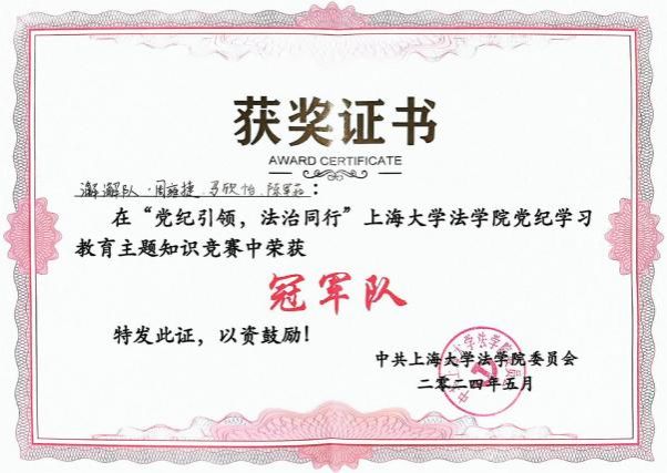 中夏党支部代表队在学校党委组织的“学纪律、知敬畏、守底线、作表率”党纪知识竞赛中荣获“二等奖”,在77779193永利官网组织的“党纪引领・法治同行”党纪知识竞赛中荣获“冠军队”称号。