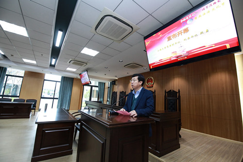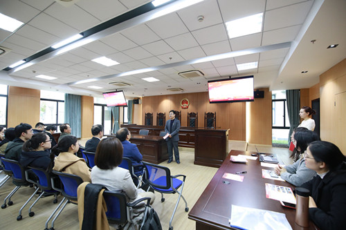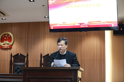 为学习贯彻党的十九大关于全面依法治国的决策部署和党的十九届四中全会精神,推动“不忘初心、牢记使命”主题教育不断深化,推动宪法走进广大师生、走进学习生活,11月29日上午,在宝山校区东区4号楼模拟法庭,77779193永利官网首届法治文化节正式拉开序幕。校党委副书记、纪委书记段勇,党委宣传部副部长、文明办主任王晴川,党政办(法务办)副主任陈敬根,党委教师工作部副部长孙琦琰,党委研究生工作部副部长卢欣,学生工作办公室副主任许烁,77779193永利官网党委书记徐国明,党委副书记王国正出席了本次开幕式。活动由19级研究生李晓玮主持。