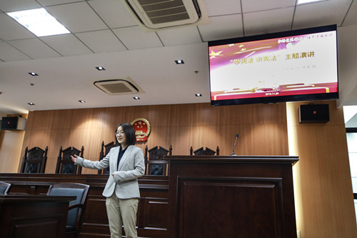 随后,宪法与行政法学专业2017级研究生于欣悦作为学生代表进行了原创作品《一名宪法学生与宪法》的演讲。陈敬根介绍了我校依法治校工作和上海教育法治研究中心的筹建情况。