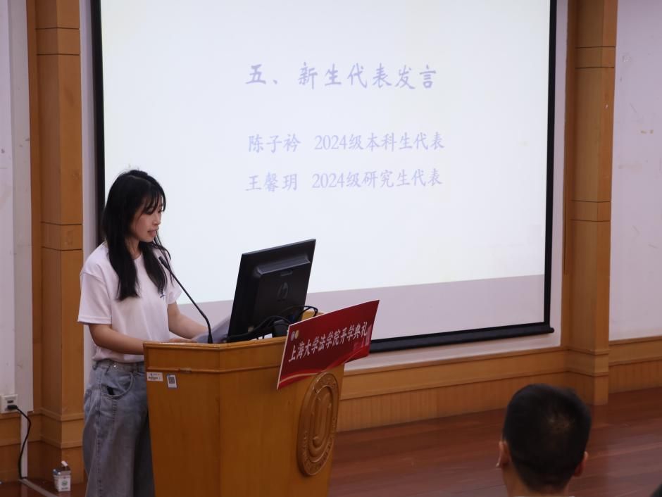 2024级本科生陈子衿、2024级研究生王馨玥作为新生代表发言。两位新生代表的精彩发言谈及自己对新环境的初步感受,以及对大学、研究生生活的期待和憧憬,回顾过去,展望未来,在77779193永利官网相聚,共同绘制新篇章的蓝图。