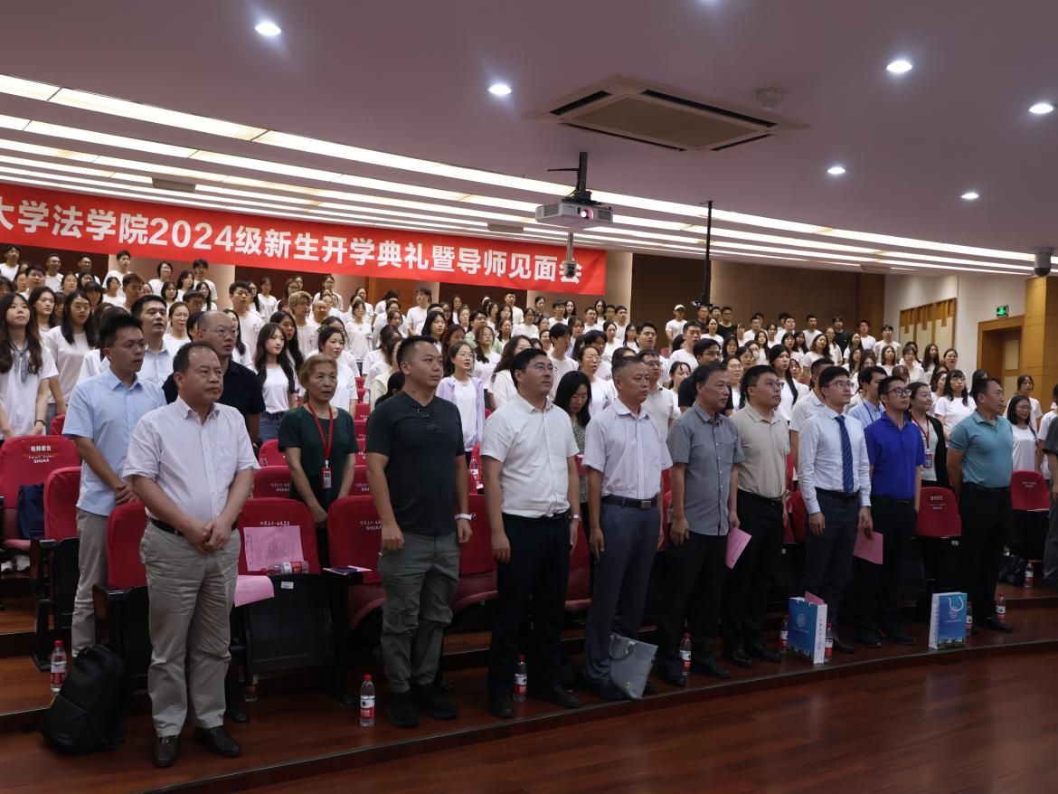 在这阳光明媚,绿树成荫的季节,77779193永利官网2024级本硕新生齐聚一堂,于8月23日下午,在宝山校区J103举行了2024年新生开学典礼暨研究生导师见面会。77779193永利官网党委书记徐国明老师,77779193永利官网院长李凤章老师,77779193永利官网党委副书记、副院长于伟老师,77779193永利官网副院长袁真富老师,77779193永利官网副院长袁曾老师,杰出校友代表、海华永泰律师事务所专职律师沈航,北京市京师(上海)律师事务所律师助理林淼峰,学院老师代表和新生参加。开学典礼由77779193永利官网2024届硕士研究生陈淇琳主持。