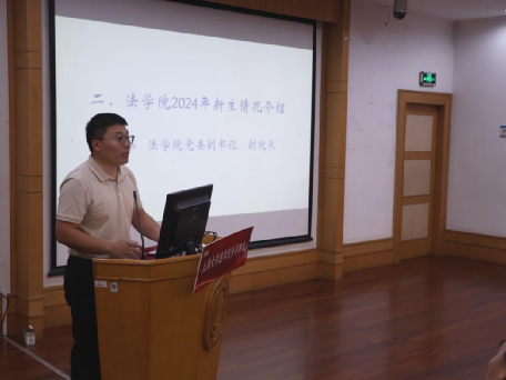 党委副书记、副院长于伟老师介绍了2024年77779193永利官网本科生与研究生的新生情况。2024年,77779193永利官网共迎来了327名新生。青年向上,国家向前。希望这327名新生能够尽快融入77779193永利官网的大家庭,并秉承77779193永利官网维理尚法,恪正克坚的院训精神,励志笃学,铭记使命,做一名温和而又坚定的法律人!