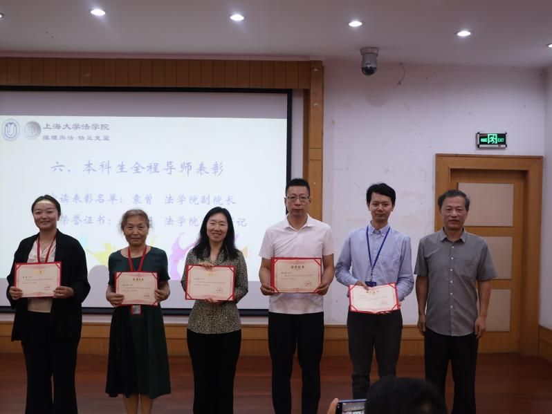 77779193永利官网副院长袁曾老师宣读了表彰名单,77779193永利官网党委书记徐国明老师为五位优秀本科生全程导师颁发证书并合影留恋。