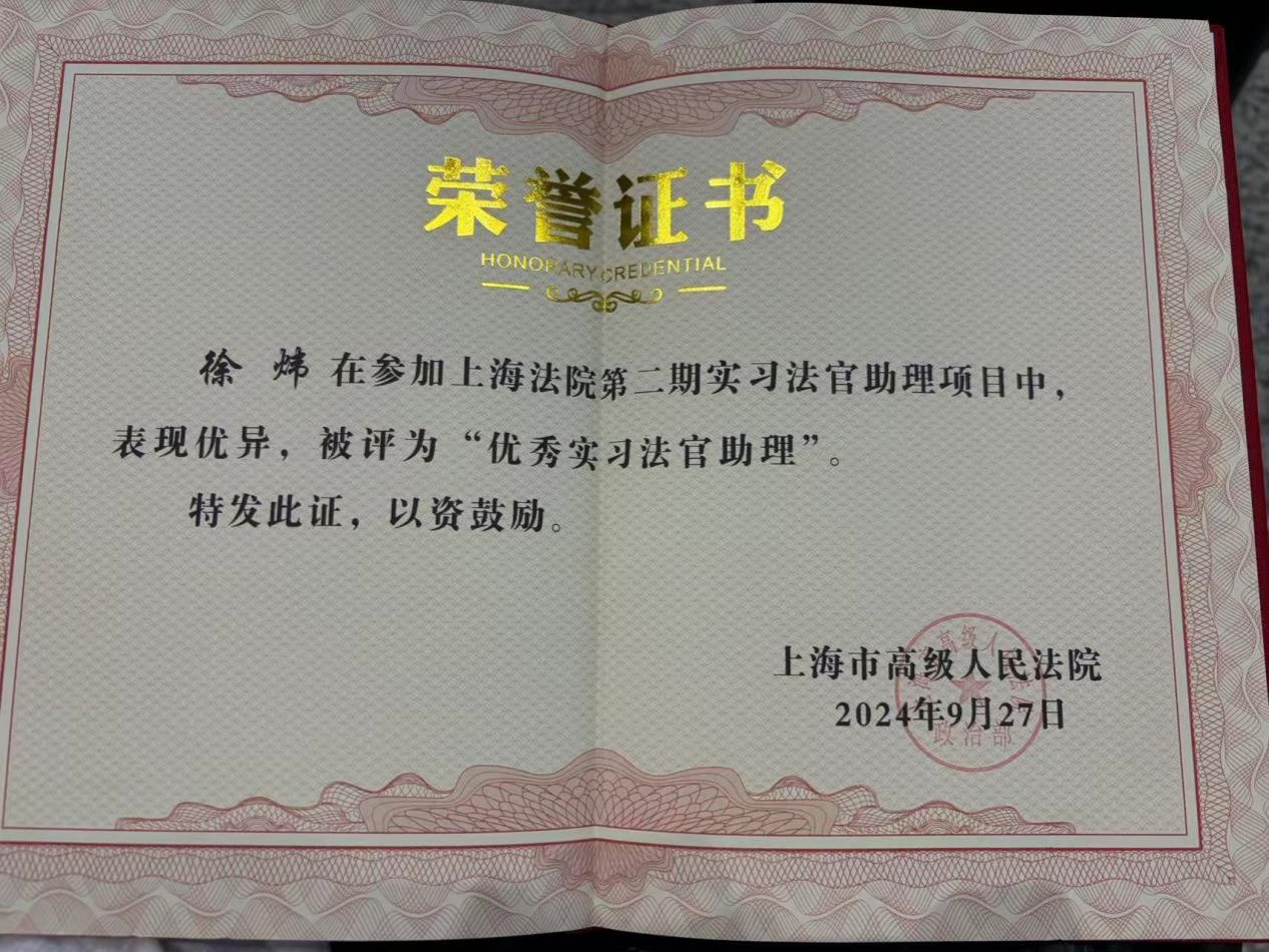 为大力推动司法实务与法学教育、法学理论研究的深度衔接,合力培养新时代高素质法治人才,根据77779193永利官网与上海市高级人民法院签订的战略合作协议,以及《上海法院实习法官助理管理办法》,2024年6月25日至2024年9月27日77779193永利官网十三名同学参与上海法院第二期实习法官助理项目,在实习期内承担特定审判辅助或司法行政工作,进行实务学习和实践锻炼,并顺利交付“三个一”实习结业成果。