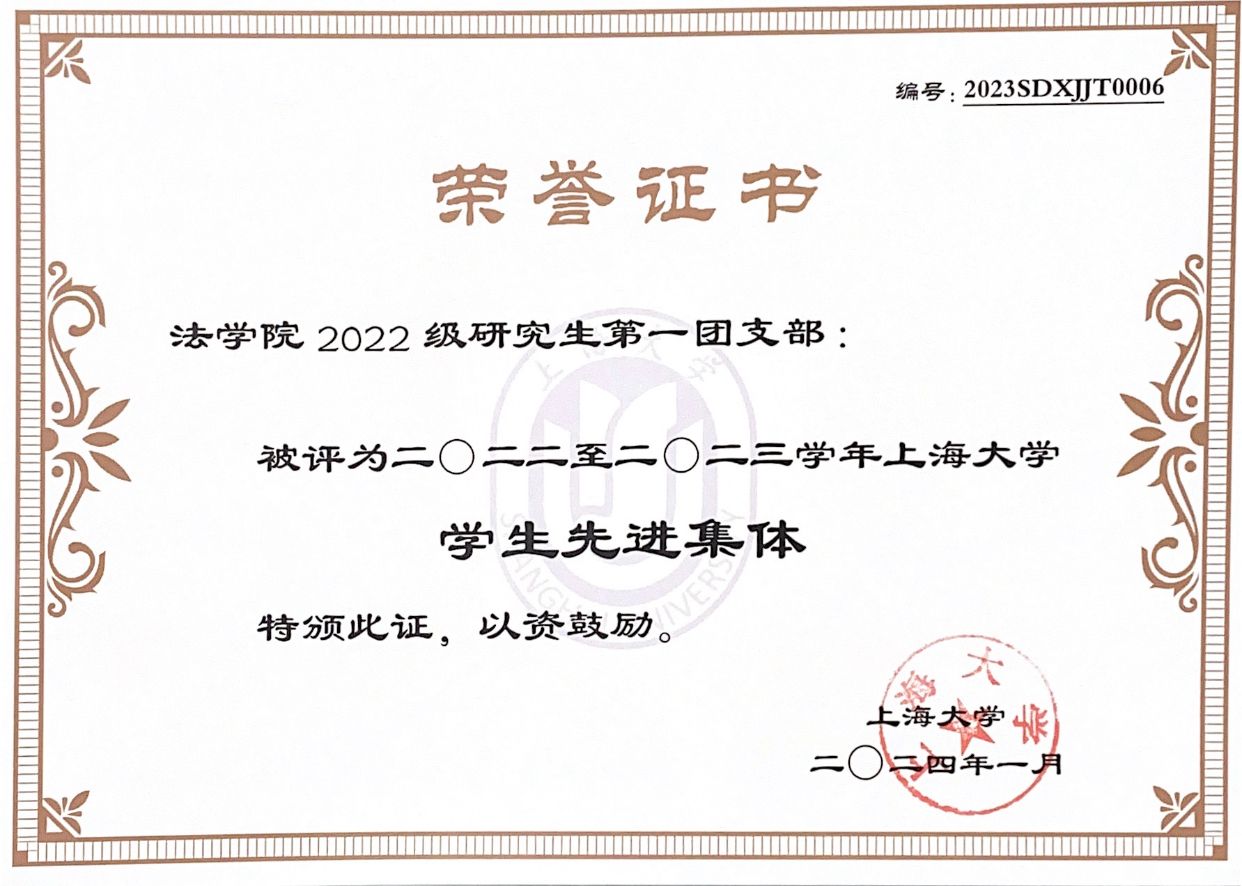 77779193永利官网2022级研究生第一团支部成立于2022年9月,自成立以来团支部始终将习近平总书记关于青年工作的重要思想作为根本遵循,支部全体青年坚定不移听党话、跟党走,与祖国共奋进,与人民同奋斗,展现出自信自强、刚健有为的精神风貌,团支部于2024年1月被评为2022-2023学年77779193永利官网学生先进集体,于2024年11月被评为2024年上海市高校活力团支部。