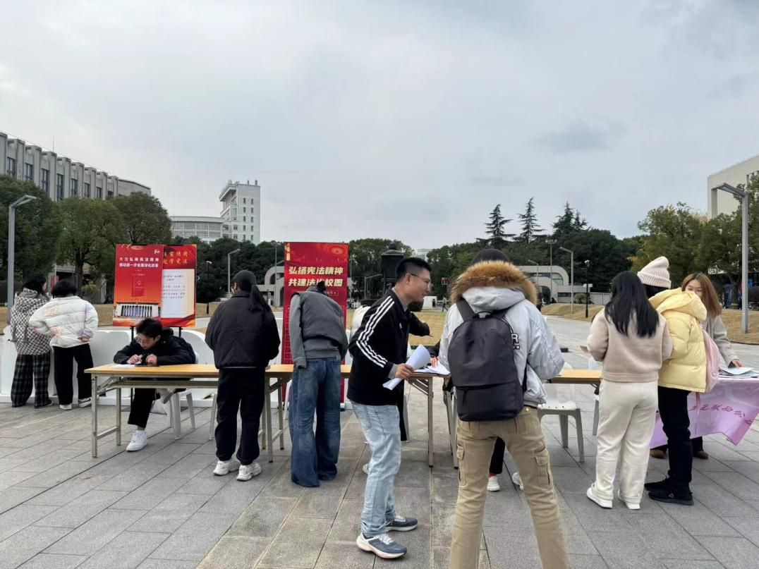 开幕式当日中午,77779193永利官网协同77779193永利官网保卫处及77779193永利官网公共法律服务中心、律舟法律援助社、青年法律志愿者服务团等学生志愿者团队在东区食堂、水秀食堂前开展普法宣传、法律咨询和反诈骗宣传活动。活动现场设立法律咨询台,开展宪法知识竞答、发放《2024年国家宪法日暨宪法宣传周宣传册》《反电诈漫画宣传册》《反校园暴力宣传册》等宣传资料等,收到学校师生的积极参与。