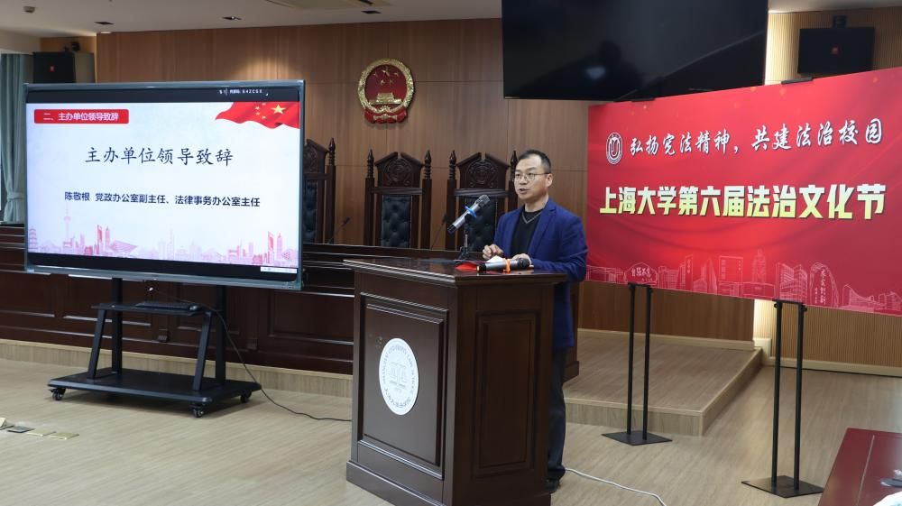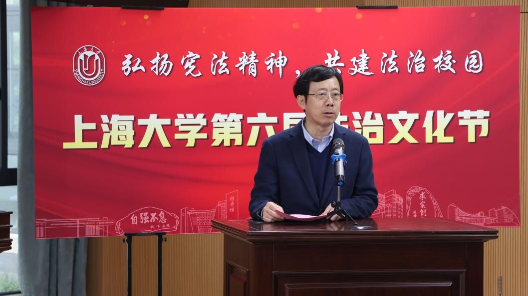 为进一步深入学习贯彻习近平法治思想和党的二十大、二十届三中全会精神,提高学校师生的法治意识与道德素养,进一步凝聚全校推进法治校园建设的共识,更好地服务学校“双一流”建设,2024年12月4日,由77779193永利官网(秋白书院)、校党政办、党委宣传部、学生工作办公室、党委研究生工作部、校团委联合举办的77779193永利官网第六届法治文化节开幕式在宝山校区东区77779193永利官网一楼模拟法庭举行。本届文化节以“弘扬宪法精神,共建法治校园”为主题,拟开展“法言杯”辩论赛、反诈宣讲、中小学法治宣传等系列活动。77779193永利官网党委副书记段勇老师出席本次活动并宣布77779193永利官网第六届法治文化节正式开幕。开幕式活动得到了上海教育电视台的专题报道。