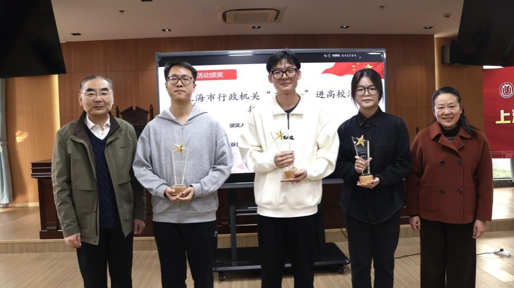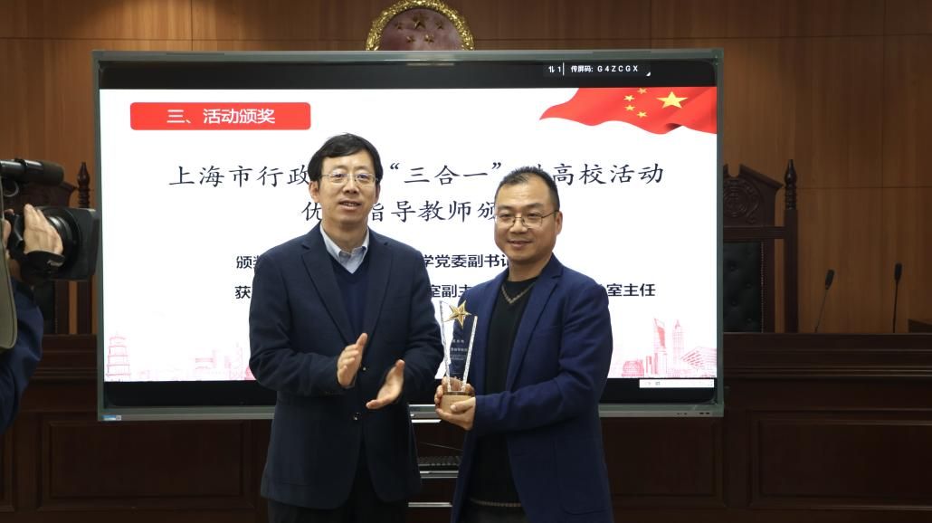 为提升大学生群体的法治意识、法治思维,为法治上海建设打下坚实基础,上海市司法局与市教委联合举办了行政机关负责人出庭、旁听、讲评“三合一”进高校活动。77779193永利官网在校法务办的指导帮助下发动组织学院学生积极参加征文活动,取得了突出的工作成效和育人实效。继2023年77779193永利官网获得优秀组织奖后,2024年陈敬根老师荣获由市司法局、市教委颁发的“三合一”进高校活动优秀指导教师奖,77779193永利官网3名同学在“三合一“征文活动中获奖。77779193永利官网党委副书记段勇老师为陈敬根老师颁发优秀指导教师奖杯,77779193永利官网工会常务副主席顾莹老师和党委宣传部副部长、文明办主任何金伟老师为77779193永利官网李圣昊、张煜轩和周丽讯同学颁发征文活动奖杯。