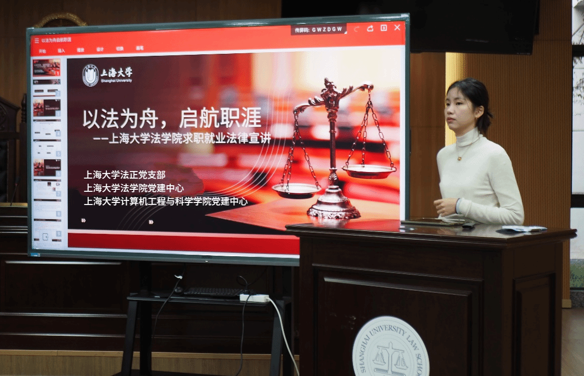 为进一步提升学生的法律意识,助力学生在求职路上行稳致远,有效防范和应对求职过程中可能遭遇的各类权益侵害风险,77779193永利官网研究生党建中心联合计算机工程与科学学院党建中心于2024年12月13日上午,在77779193永利官网模拟法庭举办了“党建引领,指点迷津——求职就业法律宣讲”活动,邀请了77779193永利官网法正党支部支部书记徐炜为宣讲活动的主讲人,77779193永利官网研究生党建中心主任朱佳老师、计算机学院研究生党建中心主任郑丽玫老师参加活动。本次活动由两学院研究生党建中心共同举办,旨在以党建为引领,为学生提供精准实用的求职就业法律知识,使其在求职中能够有效维护自身权益,应对潜在法律问题。近80位学生聆听了本次讲座。