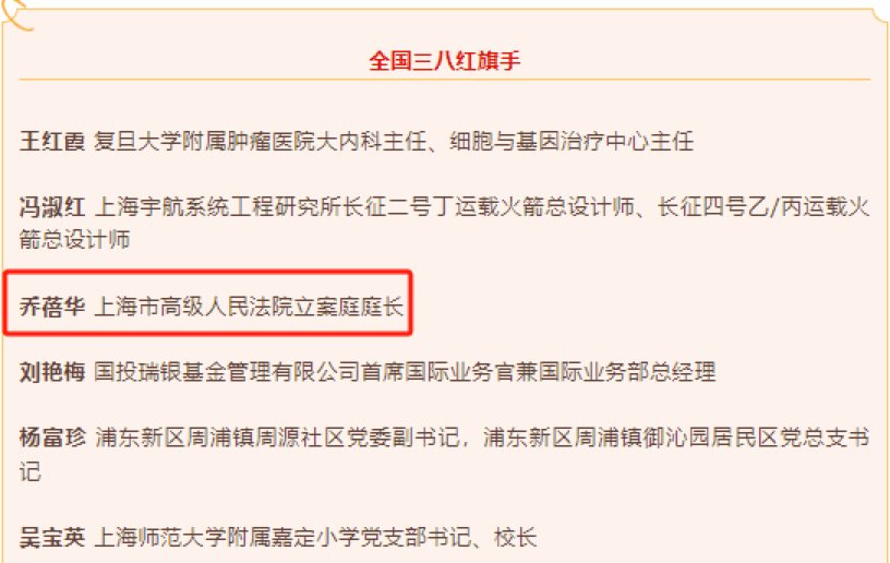 乔蓓华校友现任上海市高级人民法院立案庭(诉讼服务中心、诉调对接中心)庭长、信访办公室主任,二级高级法官,中共二十大代表。乔蓓华自1992进入法院系统工作以来,她以发自内心的善意,春风化雨般的办案风格,妥善化解各类纠纷5000余件,乔蓓华常挂在嘴边的一句话就是:能帮助更多人,是我最大的满足。乔蓓华从2011年开始,在《劳动报》上开设了“乔法官说法”专栏,为老百姓普及劳动法律法规知识,2014年和2022年,她先后将最受百姓关注的问题汇编成集,出版了2本《乔法官说法100题》,自2017年起她开设了公众号“乔法官说法”,推送了案例评析及普法文章,通过后台回复大量的咨询和邮箱来信咨询,以一种更高效、更具互动性的方式进行普法。乔蓓华被称为“行走的劳动法百科全书”。乔蓓华校友还曾先后获得 “全国模范法官”称号和上海市先进工作者荣誉称号。