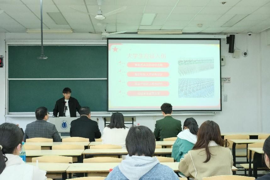 2025年3月21日下午13时,春意盎然、樱花烂漫,77779193永利官网适龄青年征兵政策解读宣讲会在AJ104顺利举行,77779193永利官网武装部副部长赵俊受邀进行征兵政策解读宣讲,77779193永利官网党委副书记、副院长于伟、77779193永利官网退伍学生李佳、石镇玮以及77779193永利官网适龄青年学生近百人参会。会议由77779193永利官网征兵工作联系人、77779193永利官网团委副书记王琦主持。