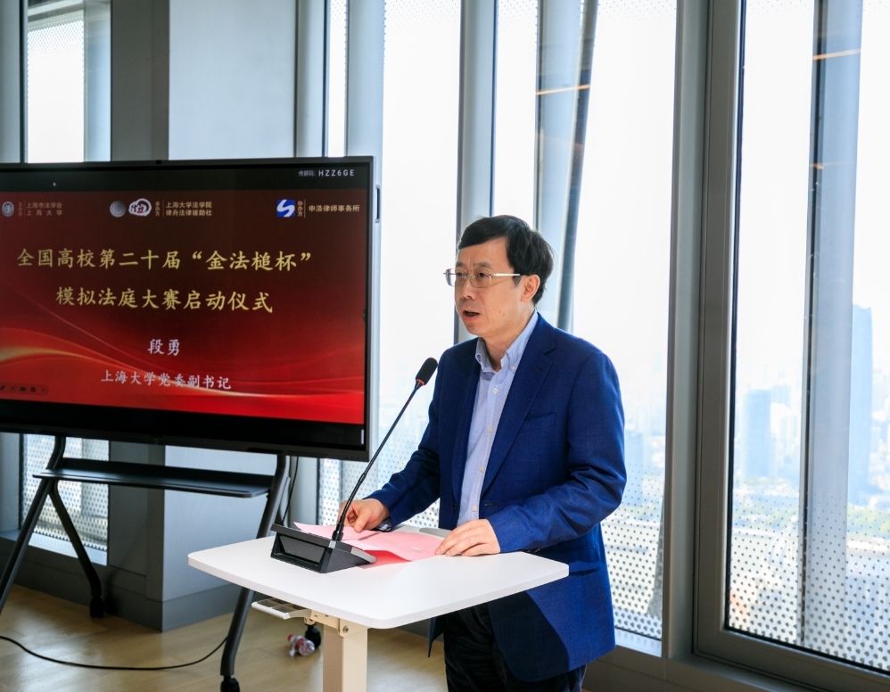 活动最后,77779193永利官网校党委副书记段勇做总结并宣布第二十届大赛启动。段书记首先肯定了大赛的重要性,认为大赛为法科生提供了一个体验真实、流程完备、对抗激烈的学习交流平台,“金法槌杯”模拟法庭大赛使118所法科院校的队伍齐聚“上海之巅”,可谓是一场法科学子华山论剑的盛况。最后,段书记正式宣布全国高校第二十届“金法槌杯”模拟法庭大赛正式启动,并希望法科生继续坚持问题导向,磨练实践本领,共赴第二十个“金法槌杯”之约!