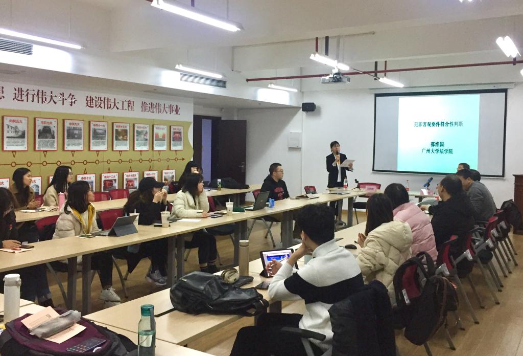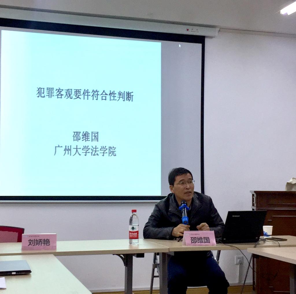 2020年1月2日晚18点,77779193永利官网泮池法学论坛第59期在77779193永利官网504会议室举行。本次讲座的主讲人为广州大学77779193永利官网邵维国教授,讲座主题为“犯罪客观要件符合性判断”。本次讲座的与谈人有南开大学77779193永利官网刘士心教授、77779193永利官网郑飞副教授以及77779193永利官网教师王林林。77779193永利官网2019级研究生刘娇艳担任主持人。