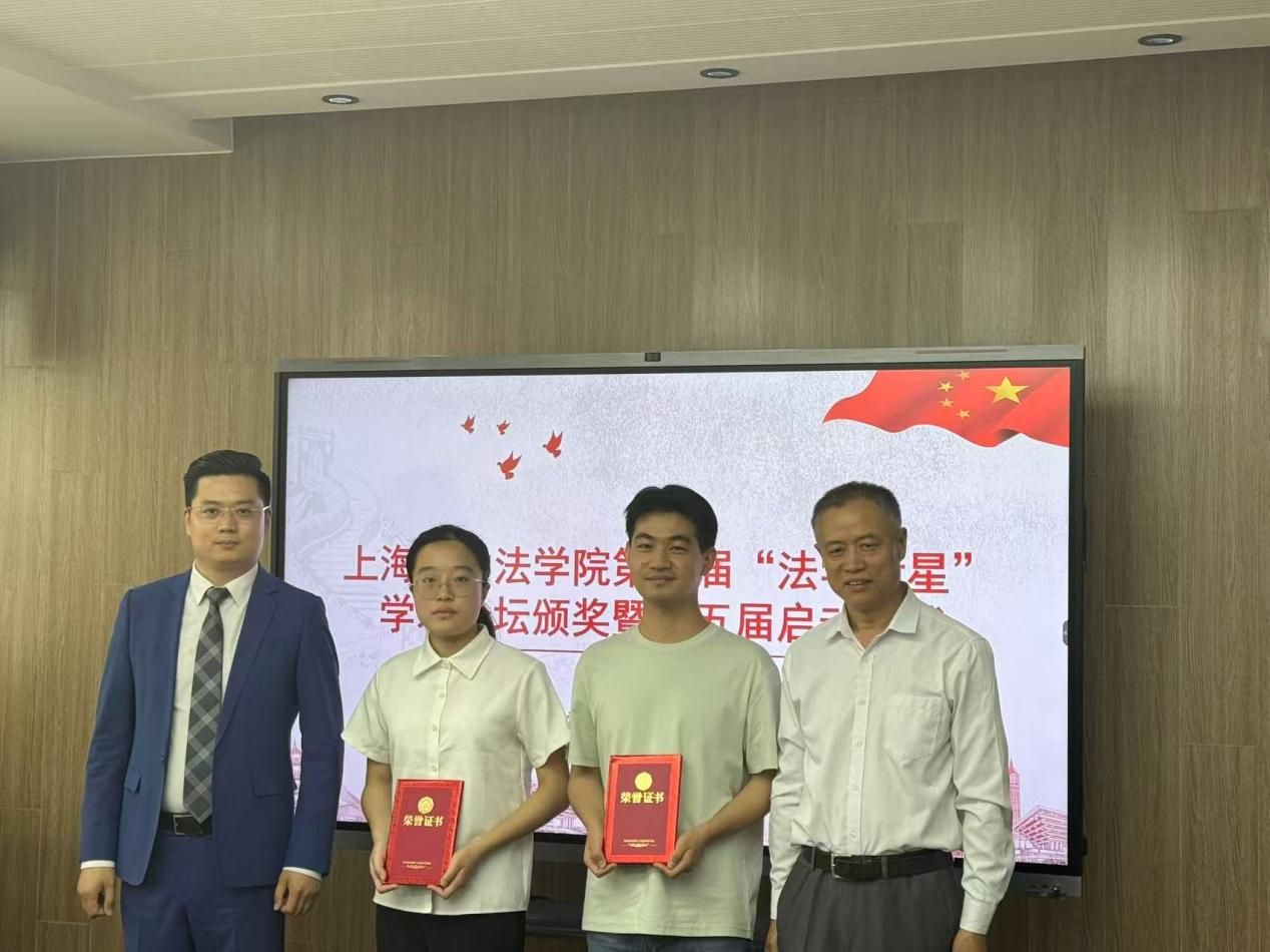 在颁奖环节,上海铸达律师事务所主任张志超、青工委副主任董晟忻、蔡峥宇、77779193永利官网党委副书记、院长李凤章分别为第四届“法学新星”学术论坛获奖同学颁奖。