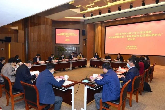 2020年4月28日,司法部仲裁法修订重大理论课题“境外仲裁机构准入和仲裁裁决的国籍问题研究”研讨会在上海召开。本次会议由上海市市司法局党委书记、局长陆卫东主持,市人大法制委员会副主任委员、常委会法工委主任丁伟,上海政77779193永利官网校长、教授、博导刘晓红作为课题组顾问出席会议并发表指导意见。市司法局二级巡视员王协在研讨会上通报了课题组前期工情况。