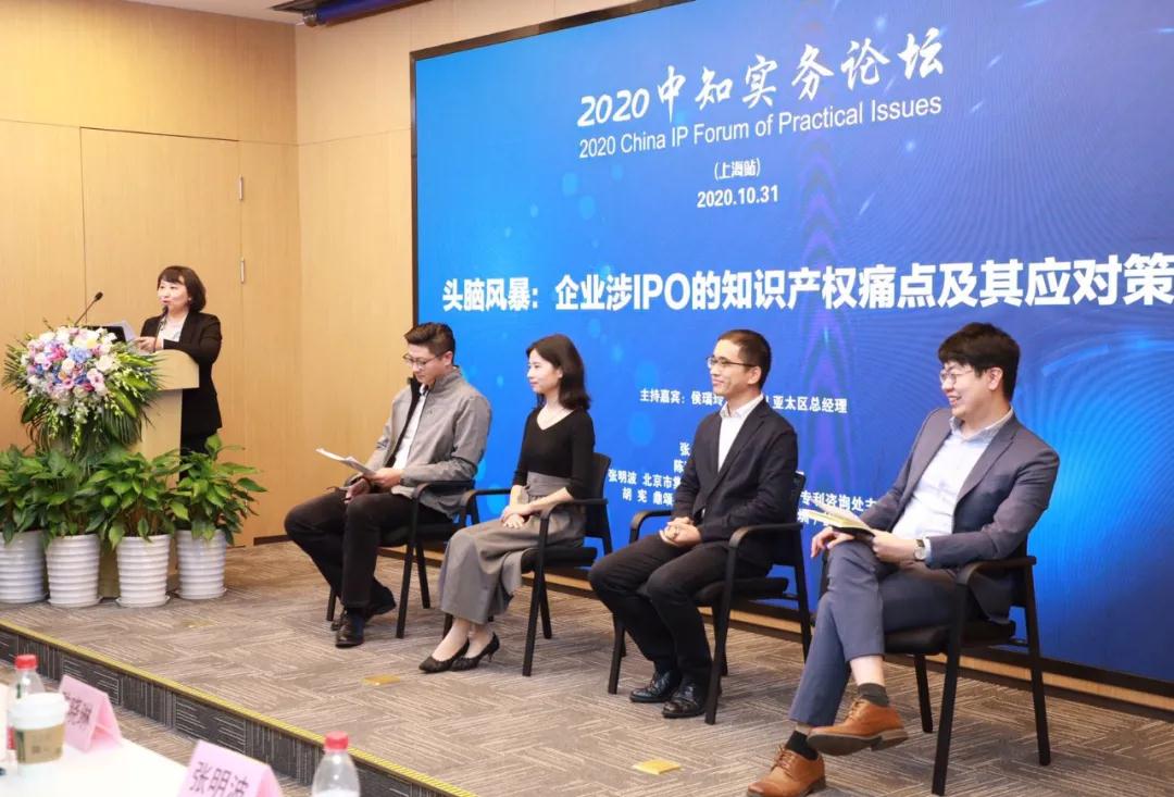 在会议最后的一小时,由法国Questel公司亚太区总经理侯瑞玲主持头脑风暴讨论,小红书法务部经理张杰、苏宁易购法务经理陈晓琳、北京市集佳律师事务所上海分所专利咨询处主任张明波和鼎颂投资法律资本研究院深圳执行院长胡宪共同参与了研讨,就企业IPO面临的痛点表达自己的看法。