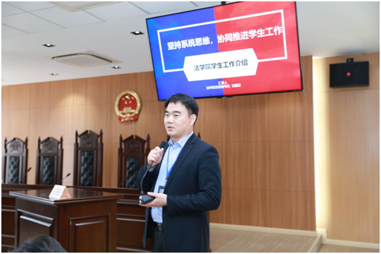 王国正介绍了77779193永利官网学生工作。重视学生德法兼修,主办法治文化节,组织学生开展普法宣传和法律援助。重视学生的课外能力培养,鼓励学生参加本科生学术论坛,开展研究型学习;主办“法言杯”辩论赛,提升学生的思辨能力;承办“金法槌杯”模拟法庭大赛,提升学生的实践能力。建有34家实习基地和多个奖学金,助力学生成才。